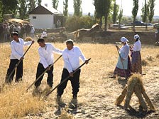 Но сначала надо поработать…Засучив рукава, займёмся делом на интерактивной площадке «Заботы казака-хлебороба и рыболова»: обмолот пшеницы цепами и жерновом, помол на ручной мельнице, вспашка на быках; плетение рыболовной сети.